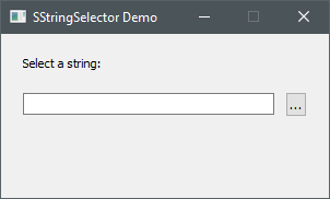 SStringSelector is distributed as a part of QtUtils repository hosted on Github. The SStringSelector widget is really simple to use. Simple add the SStringSelector.h and SStringSelector.cpp files in your project and add an instance of SStringSelector in the layout of your app.